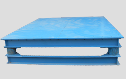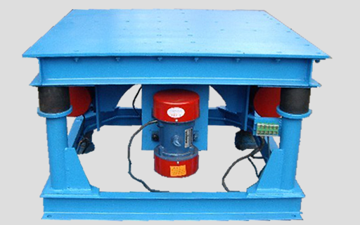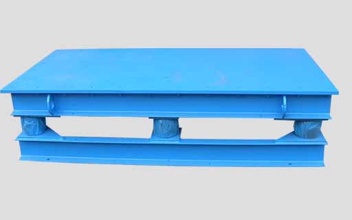 混凝土水溝蓋板振動(dòng)臺(tái)主要由臺(tái)底架、振動(dòng)電機(jī)和彈簧等部件組成,臺(tái)面與底架均用鋼板和型鋼焊接而成,振動(dòng)臺(tái)是用振動(dòng)電機(jī)加一對(duì)相同的偏心輪組成。并通過(guò)一對(duì)吊架聯(lián)軸器安裝在臺(tái)面(反面)中心位置,起著振實(shí)過(guò)程中平穩(wěn)、垂直方向的作用。